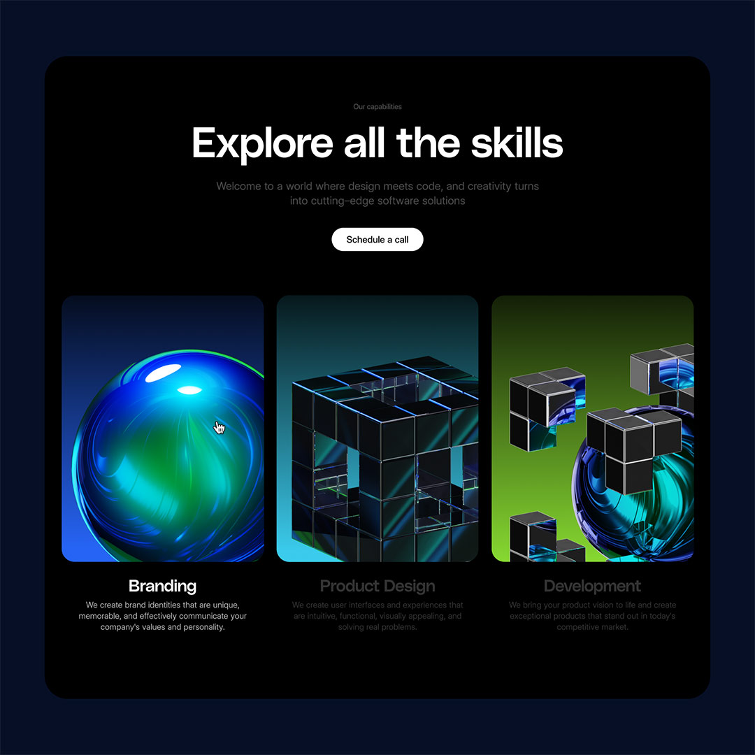 SolutionWe developed a set of 3D graphics that became the backbone of their visual strategy. These elements set the tone for the entire branding system, shaping everything from their website to marketing materials.